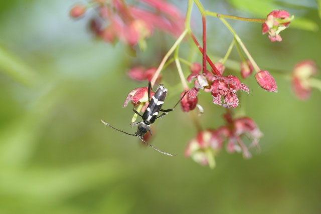 カエデの花に飛来したヒメクロトラカミキリ 北安曇郡小谷村 2007.5.04