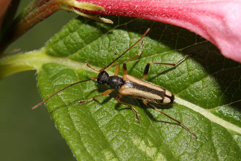タニウツギに飛来したヒスイヒメハナカミキリのオス