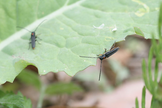 アブラナの葉を後食するキクスイカミキリ