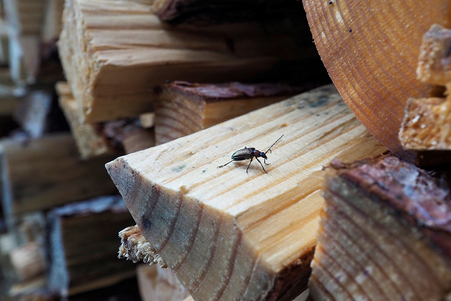 アカマツの薪材に飛来したクビアカハナカミキリ
