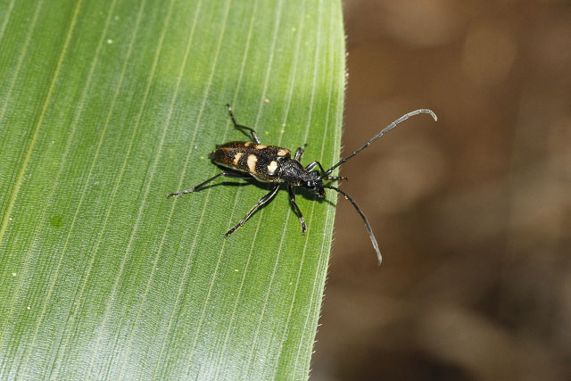 前胸背板中央に明瞭な縦の溝があることが名前の由来になっているハナカミキリです。