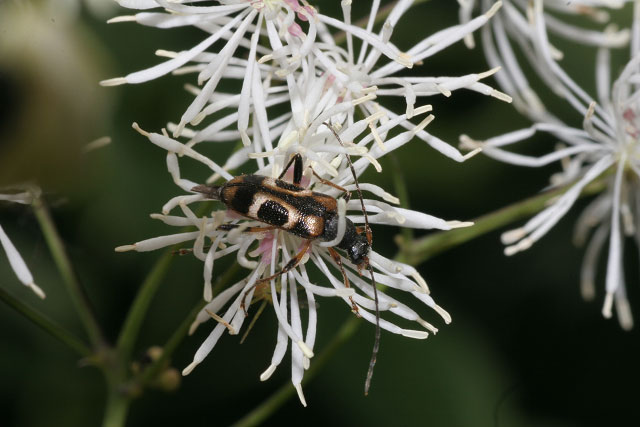 ショウマ類の花で採食するカグヤヒメハナカミキリのメス