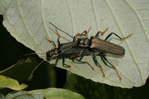 葉や花上で見ることが多く、一見したところカミキリムシに似ています。