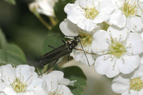 名前のとおり長い触覚や体形が似ているうえ、花上で見ることも多いため、カミキリムシと混同されやすい甲虫です。