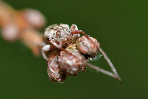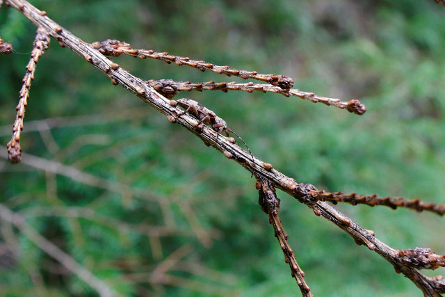 細枝に静止していた個体は驚くほど枝の色合いに似ていました。