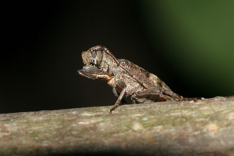 人が近づくと急に姿勢を上げ、前肢を折り曲げてボクサーのような構えをします。木の芽などに擬態しているのかもしれません